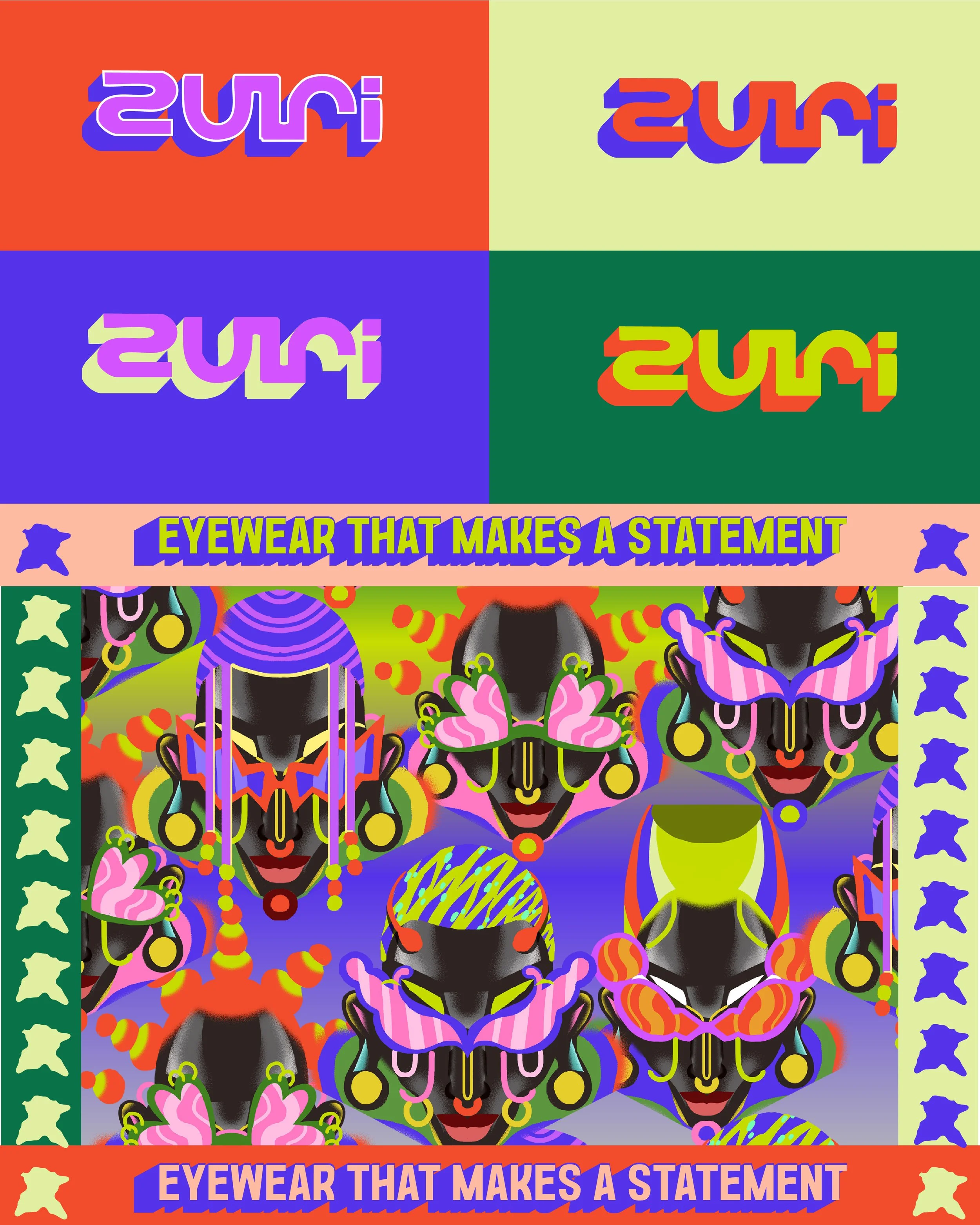Meet ZURI 🕶️ — Where eyewear isn’t just an accessory, it’s a statement. 😎 Bold, experimental, and designed to turn heads. The brand identity rejects the plain cookie cutter way eyewear brands position themselves and becomes a love letter to standing out, originality and uniqueness. Through the colourful and diverse illustrations and textured collateral, Zuri sunnies aren’t just for blocking the sun—they’re for making sure you shine wherever you go ✨